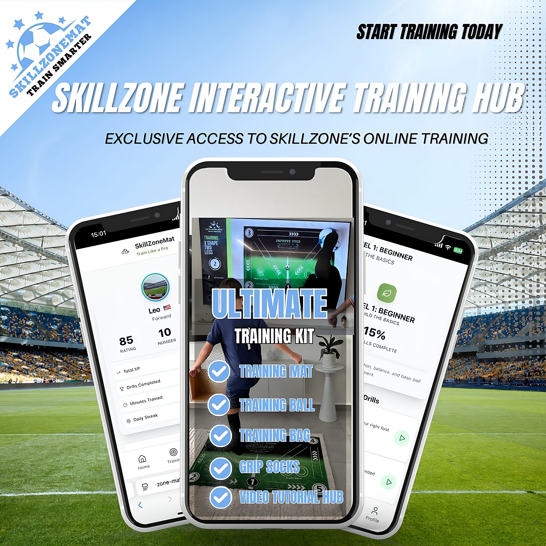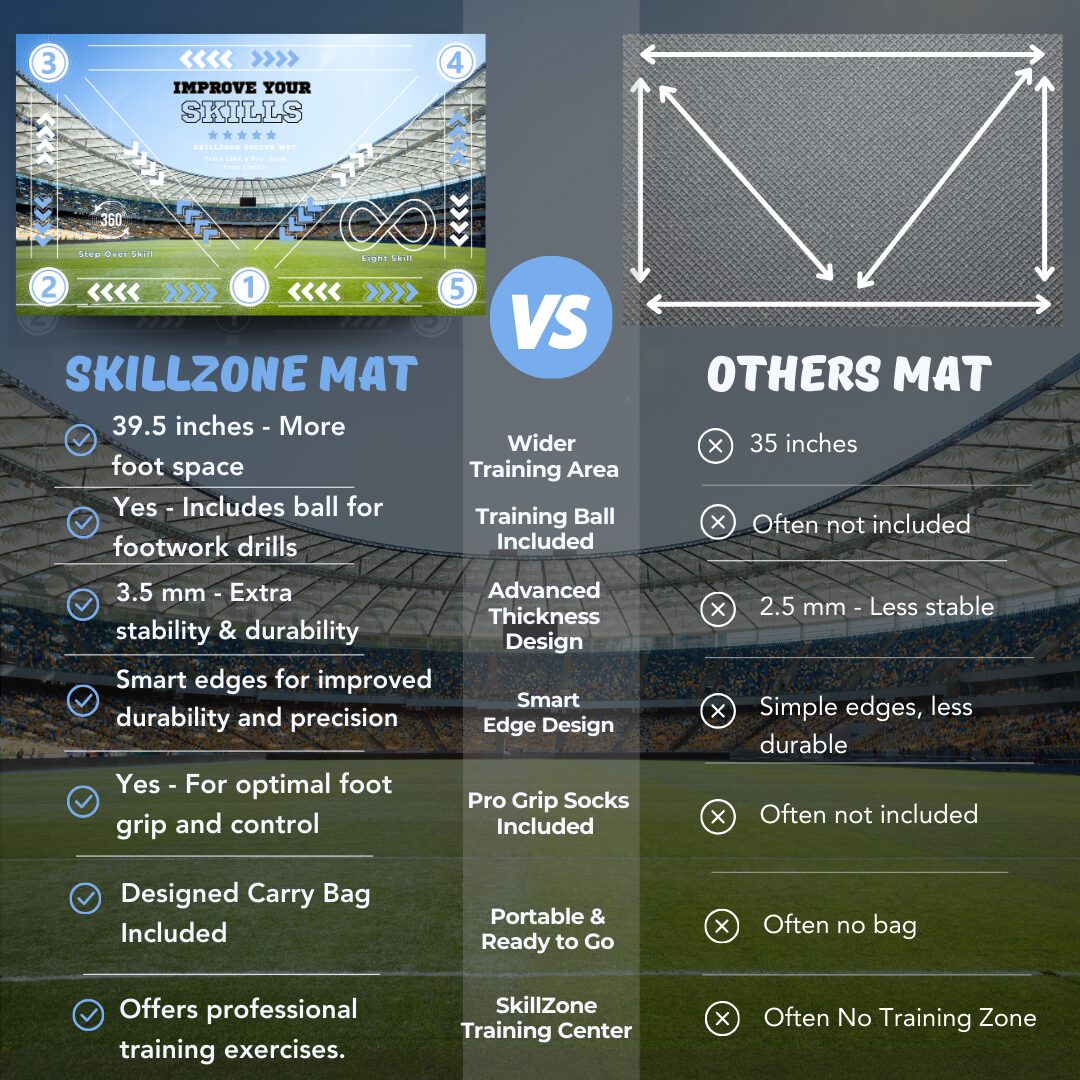 Dominate your game with the Match DayMat, engineered for control and endurance. Its extra-thick, durable material offers superior cushioning for intense drills, while the wide surface accommodates every move. The sleek black grip socks ensure optimal traction, and the non-slip base enhances training accuracy. Store and carry your mat effortlessly in its custom-designed bag and level up your skills with on-demand training videos for consistent improvement