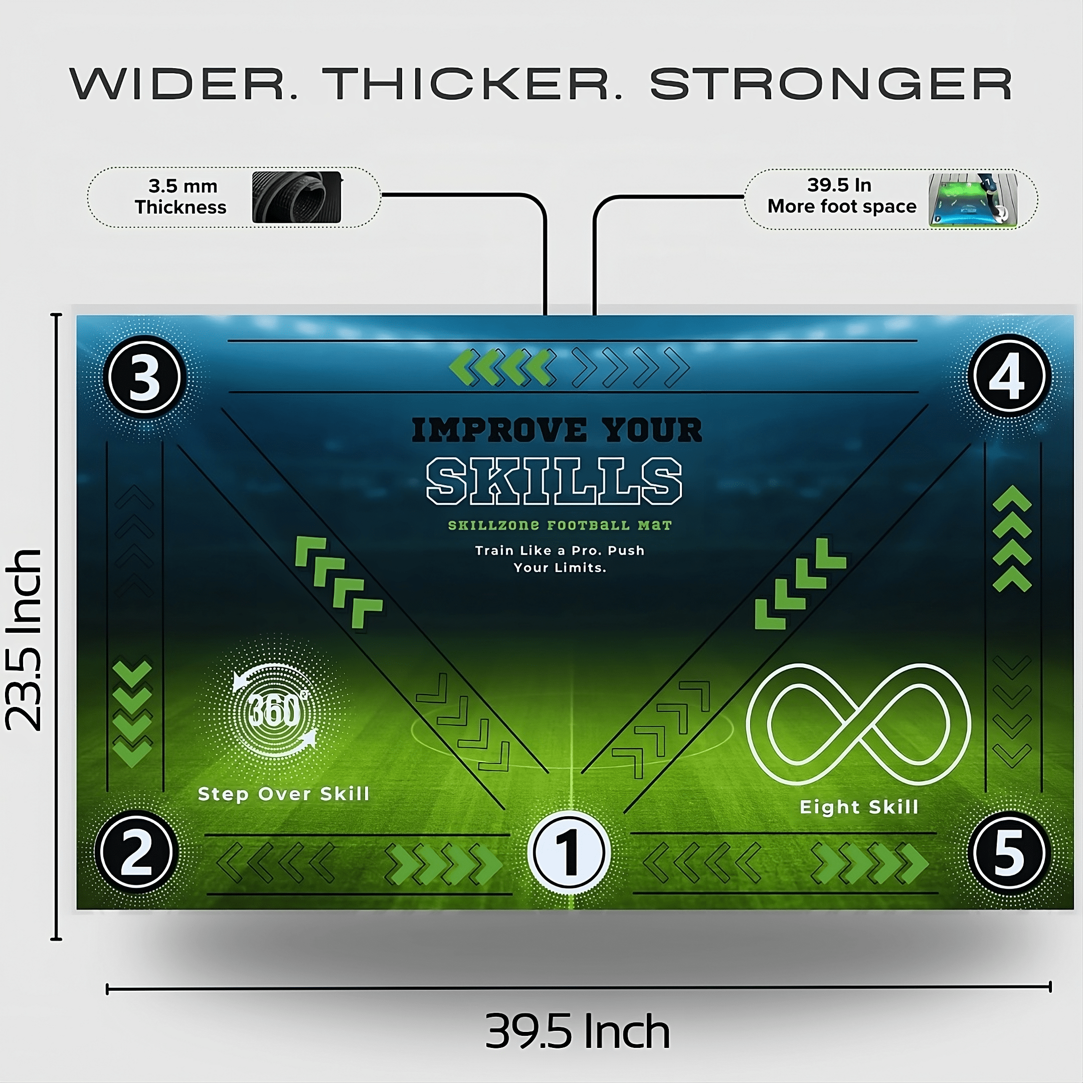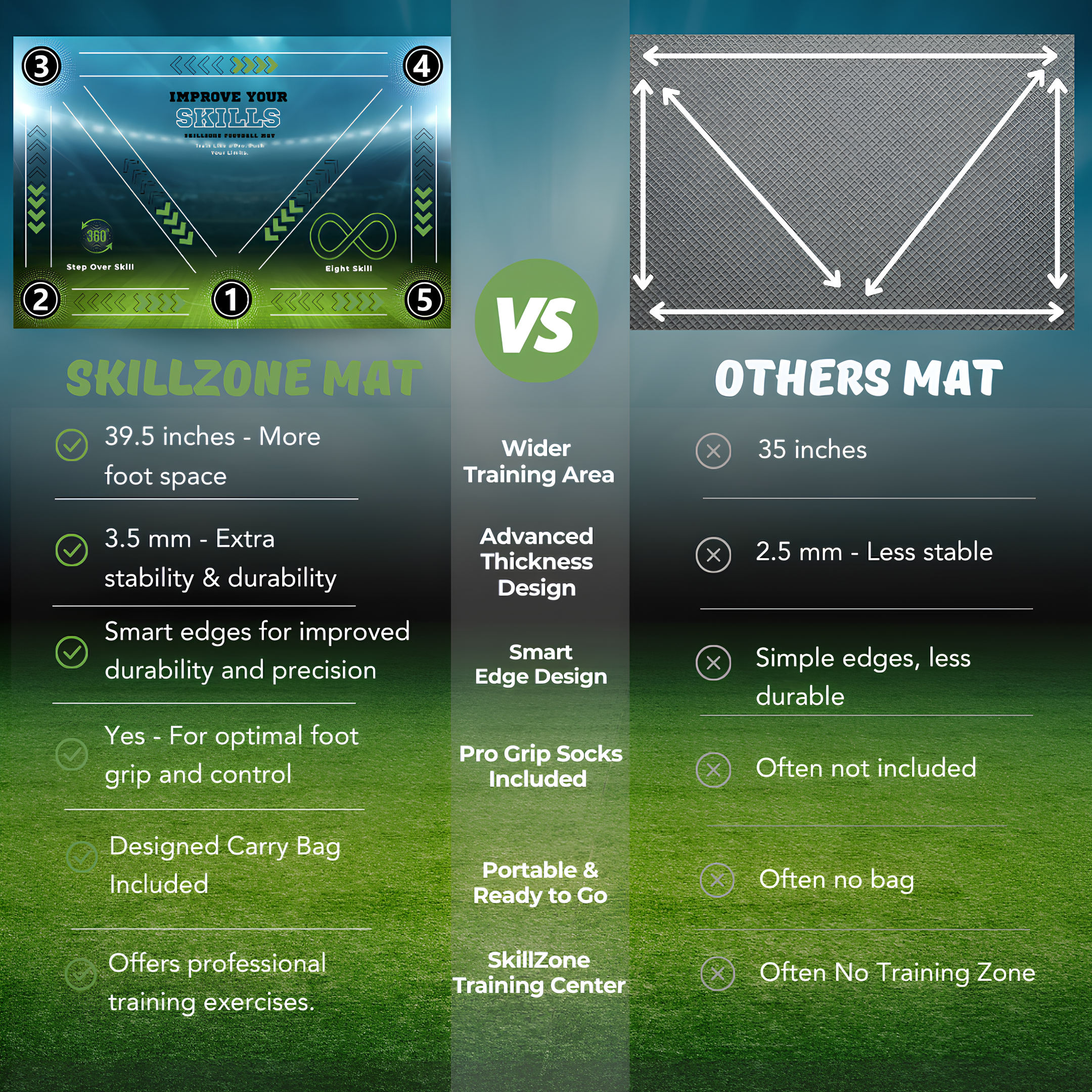 The SkillZone Football Mat is designed for flexibility. Whether in your backyard, living room, or at the park, perfect your skills anywhere.