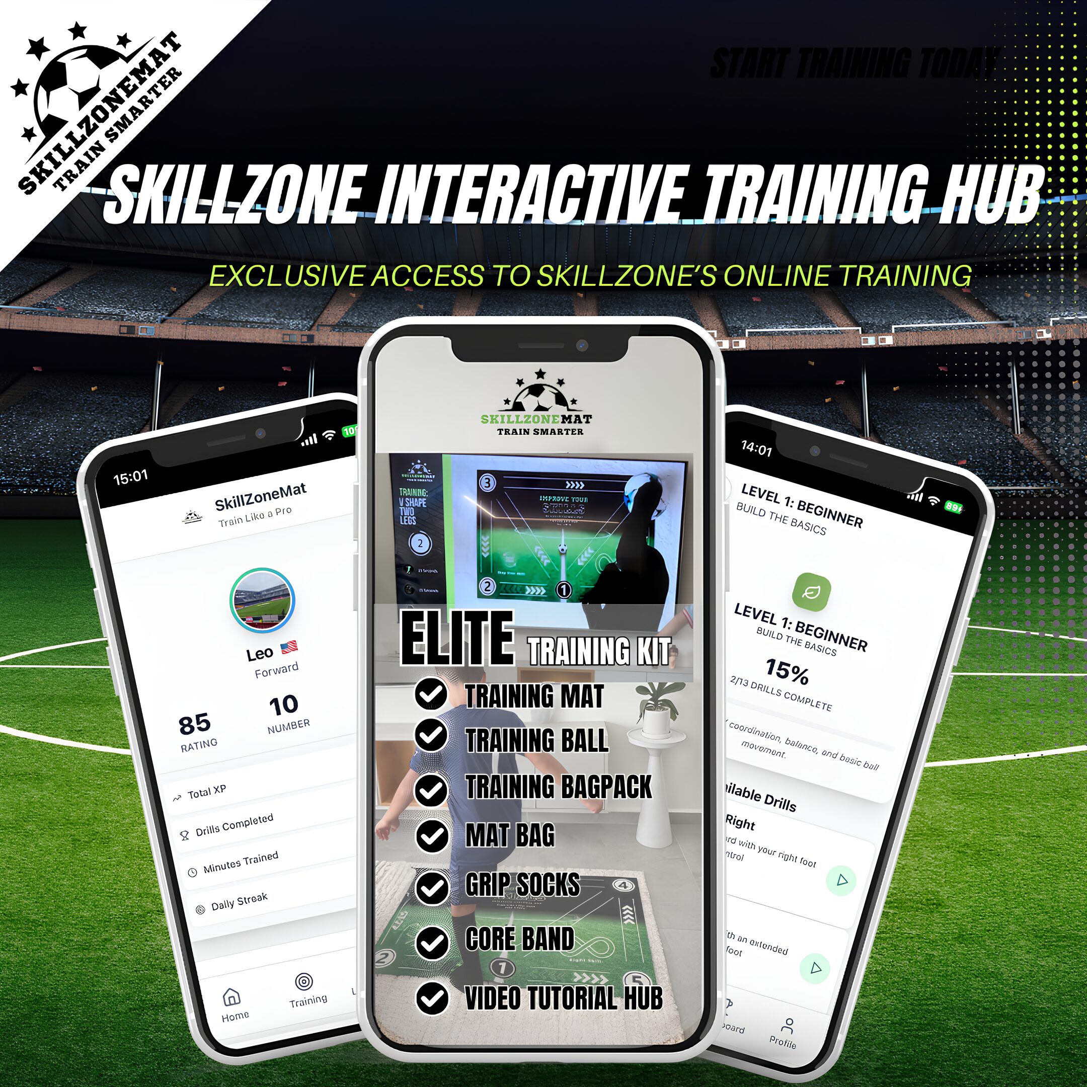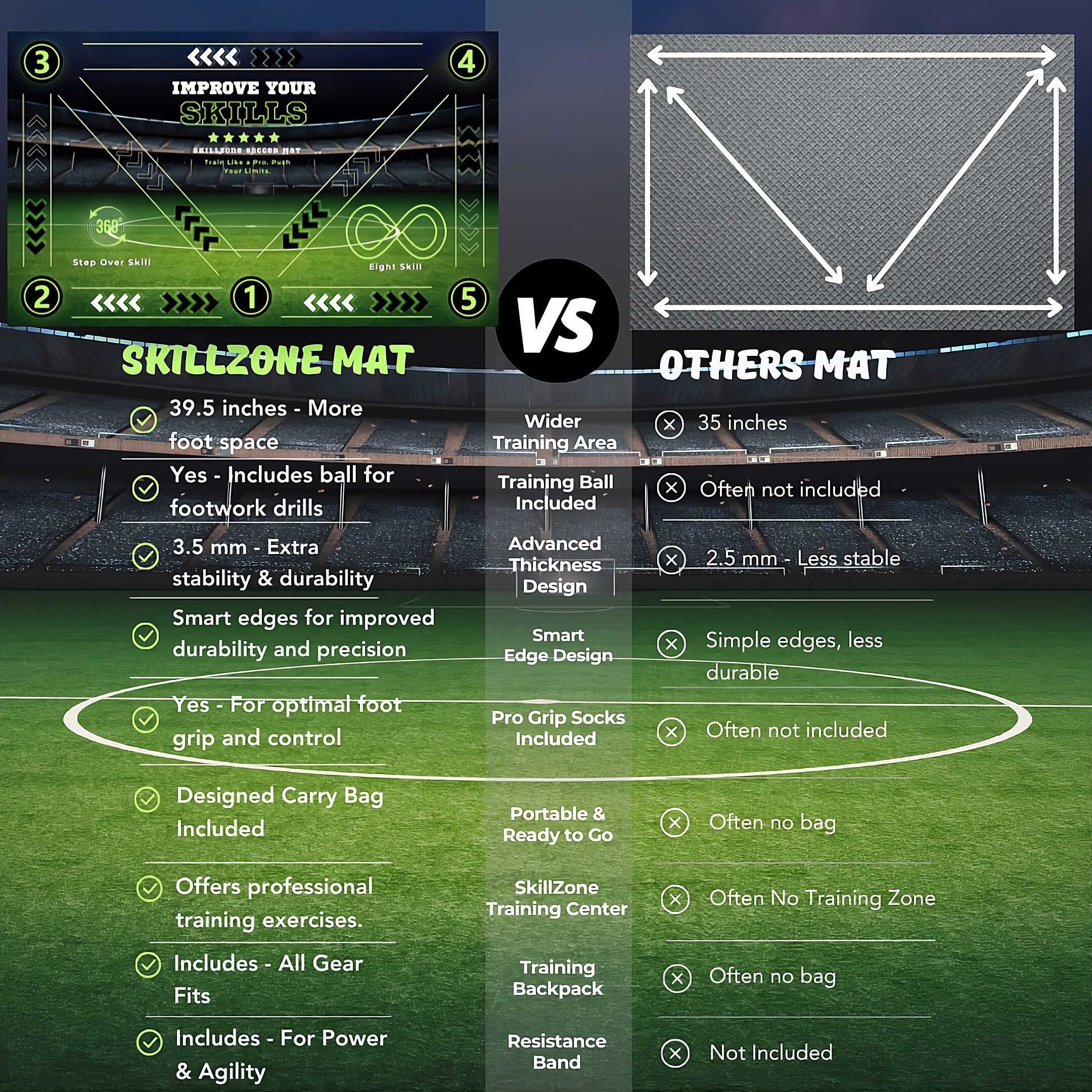 The SkillZone Football Mat is designed for flexibility. Whether in your backyard, living room, or at the park, perfect your skills anywhere.